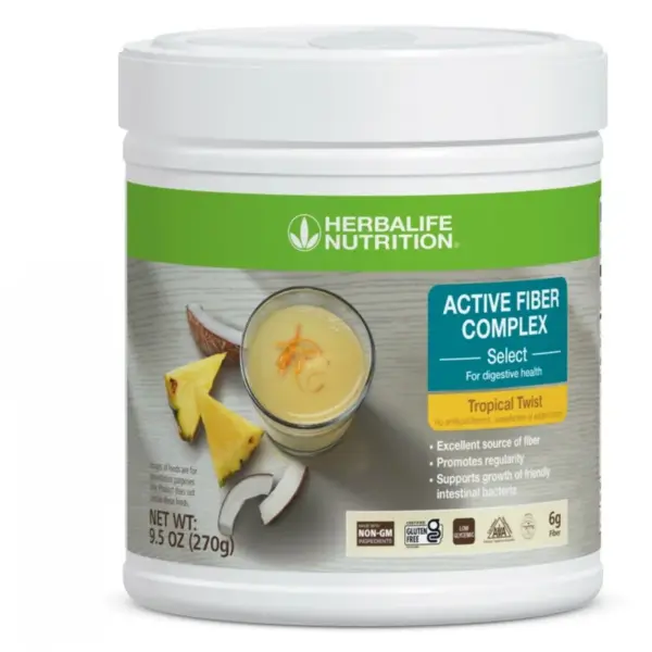 Active Fiber Complex Select Tropical Twist provides an excellent source of dietary fiber. Simply enjoy in water or add it to your favorite shake, aloe or tea. Specially formulated with an excellent source of fiber of 6 grams per serving, which supports the recommended daily intake of 28 grams of fiber.